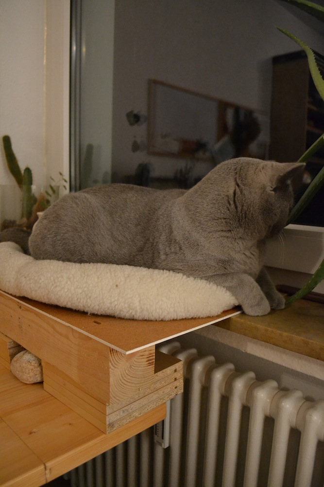 Obendrauf kam das seit zwei Jahren verschmähte Katzenbrett und Harry lag sofort drin!