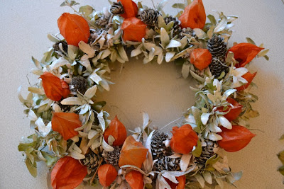 Durch die Stürze ist der Kranz zwar etwas unrund und aus der Form geraten, doch auch so hellt er mit dem leuchtenden orange die trüben Wintertage auf.