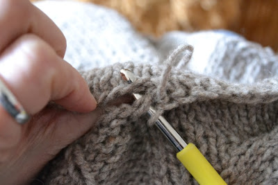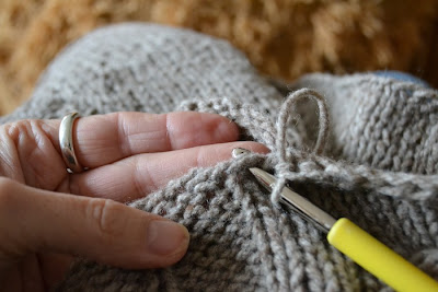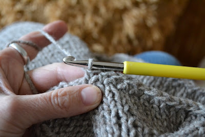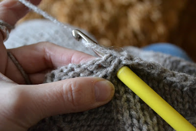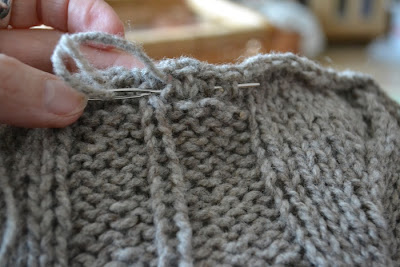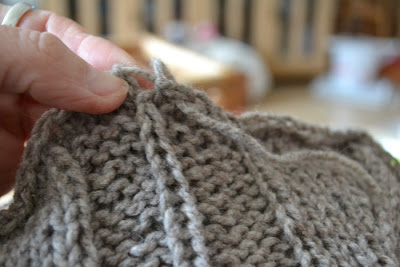 Weil selbst so das Stricken des festen Garns sehr auf meine Gelenke ging „verschob“ sich das angefangene Strickzeug in seinem Korb seit Ende August 2012 Tag für Tag, Woche für Woche etwas weiter weg aus dem Sichtfeld. Bis jetzt!