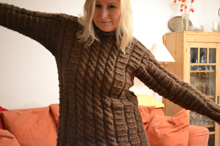 Zehn Tage Stricken, Auftrennen, Stricken, Nähte schließen, Auftrennen, Stricken, Vernähen, Anziehen. Hmm, naja, nicht zu 100% dem Bild im Hinterkopf entsprechend, aber, bevor ich das Teil wirklich auftrenne und neu stricke will ich doch das neue Stativ und den Fernauslöser ausprobieren.