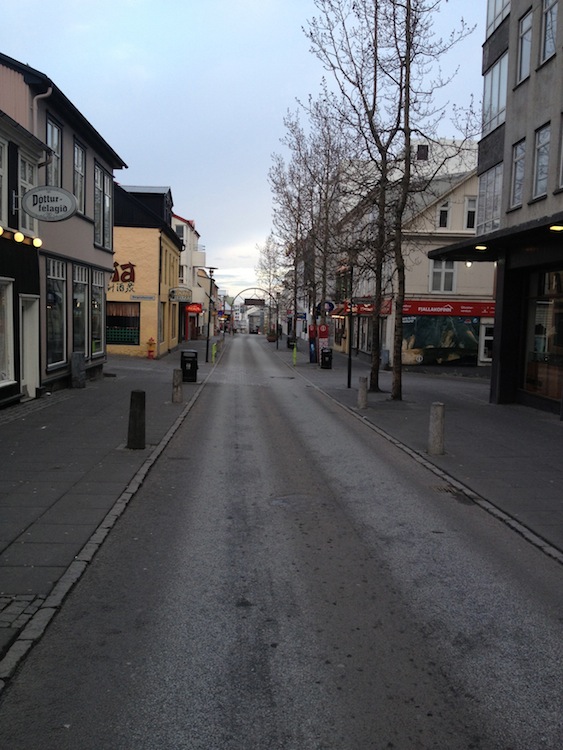 Pünktlich um 8.00 Uhr stand ich vor meinem Hotel und wartete erst einmal 10 Minuten auf meinen kleinen Zubringerbus, der mich zum großen bringen soll. Bis dahin schaue ich mich noch einmal um. Wie um diese Uhrzeit zu erwarten liegt die Laugavaegur, eine der Haupteinkaufsstraßen Reykjaviks, wie eingeschlafen da. Nichts ist los, weder bergauf …