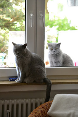 Das Katzenkino meiner zwei Kater vor den Fenstern mit ihren Besuchern