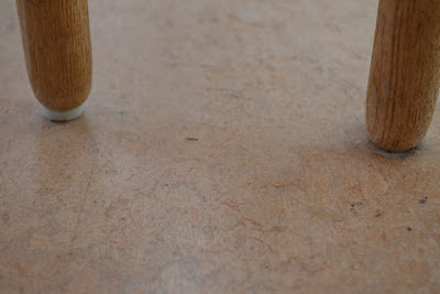 Diese Gleiter gibt es inzwischen schon ab einem Durchmesser von 16 mm. Nageln fand ich zwar auch nicht so toll, zumal es nicht so einfach war in das Hartholz meiner Stühle zu klopfen, aber die Löcher, die dabei entstehen sind nicht so groß wie beim Schrauben. Doch nach getaner Arbeit standen auch diese Stühle da, wie auf Highheels. Nicht schön! Aber was tut man nicht alles um seinen Fußboden zu schonen. Leider nutzten sich die Filzbeläge schneller ab, als erwartet und vor allem, wie die Absätze bei Schuhen, ungleich.