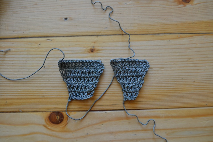 Das Dreieck war zu breit! Mit ein paar Maschen rechts und links weniger konnte ich für den Keil endlich einen Platz finden. Allerdings, trotzdem ich den Dreh herausgefunden hatte, brauchte ich beim zweiten Ärmel noch einmal vier Anläufe, bis alles passte.