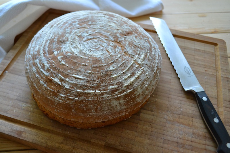 Nach weiteren 40-50 Minuten das Brot aus dem Backofen nehmen und auf einem Rost, mit einem Geschirrtuch abgedeckt, auskühlen lassen.
