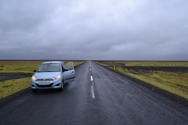 Viel versprach das Wetter auch heute nicht, es blieb bei Regen und der Wind hatte deutlich zugenommen. Es ging weiter in Richtung Osten entlang der Südküste und weiter durch eine beeindruckende Wüstenlandschaft rechts und links der Straße: schwarze Vulkanasche und Vulkangestein, an manchen Stellen sind große Flächen bewachsen mit Moosen und die Straße scheint immer schnurgerade geradeaus zu gehen.