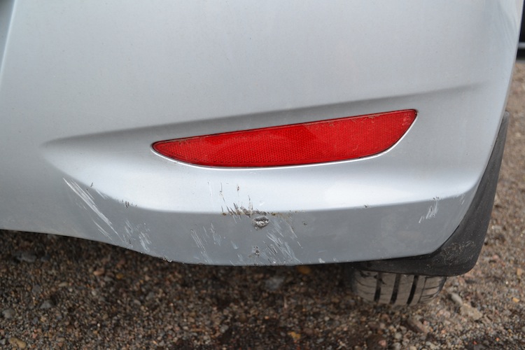 Neben Kratzern steckt nun noch ein Stück Fels in der Stoßstange fest.