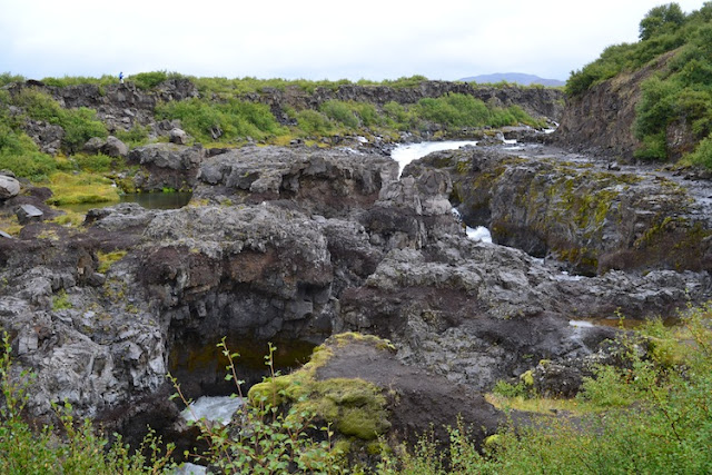 In oberidischer Fließrichtung kommt zuerst der Barnafoss, was übersetzt der Kinderwasserfall bedeutet. Hintergrund für die Namensgebung ist eine alte Sage. Nach dieser sind an dieser Stelle Kinder ertrunken (siehe auch Wikipedia hier).