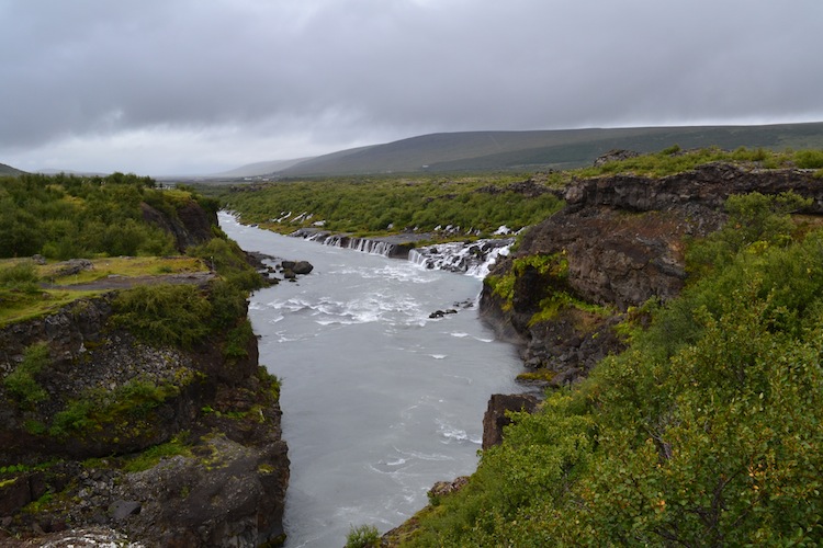 Nachdem sich das Wasser durch dieses Nadelöhr gespült hat fließt die Hvita als Fluss zuerst ruhig weiter.