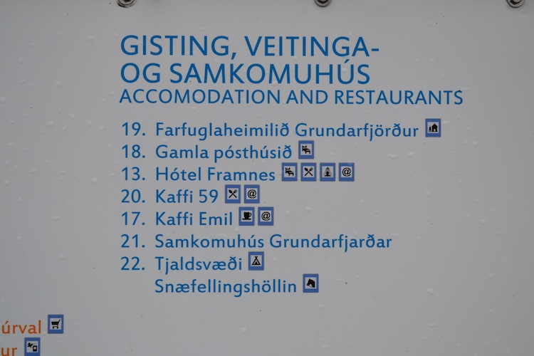 Ortskarten am Ortseingang mit etlichen Details gibt es natürlich auch in Island, wie hier in Grundarfjörður.
