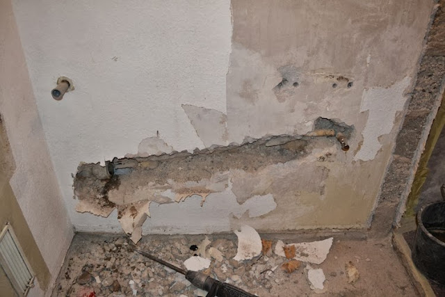 Ursachenforschung nach Wochenbeginn. Das Abwasserrohr muss weg. Also wieder mit dem Bohrhammer Nachbarn um ihre Ruhe gebracht.