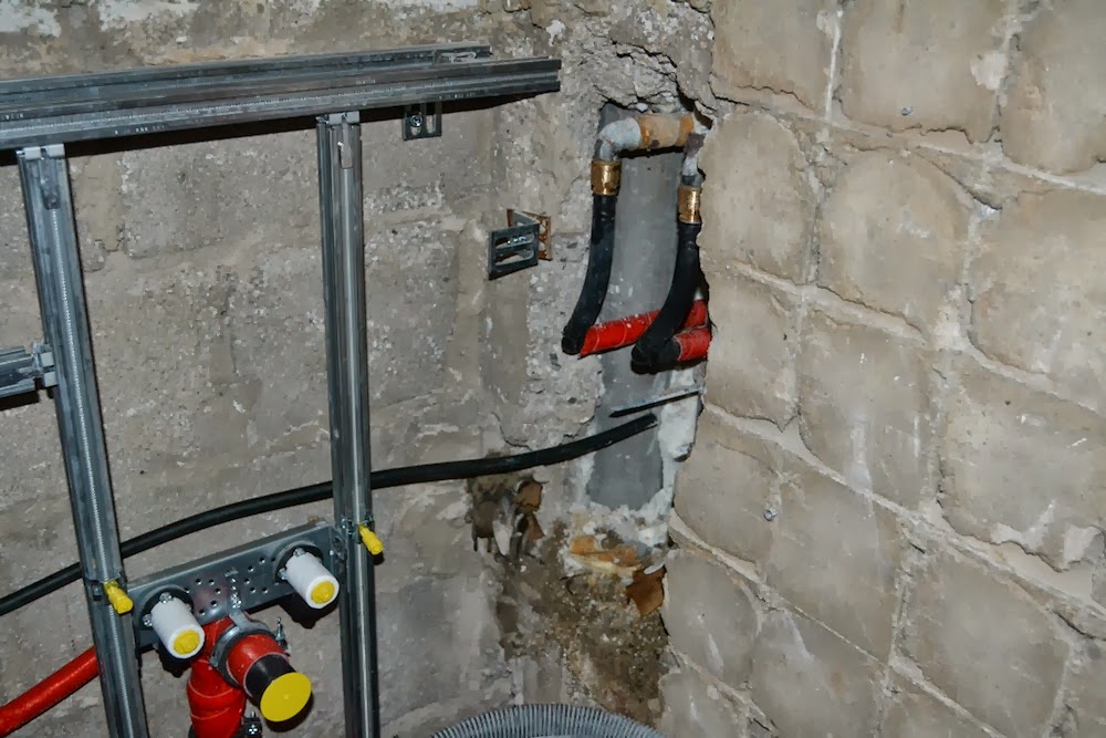 Die Rohre für die neue Dusche liegen nun in der ehemaligen Toilette: