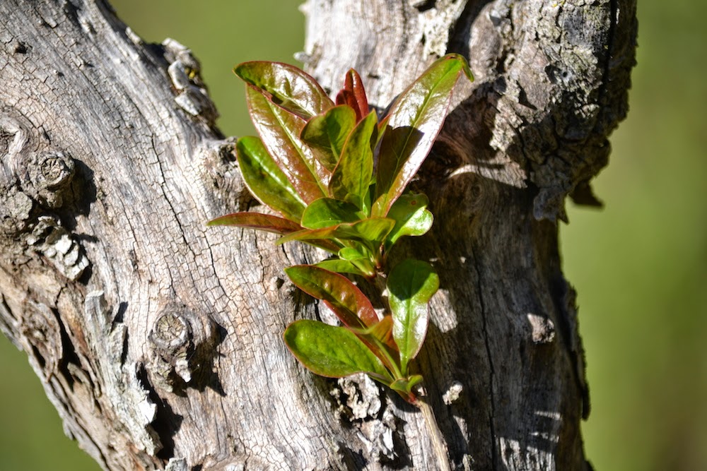 Er lebt noch, der Granatapfelbaum im Garten meiner Freundin. An vielen Stellen treibt es grüne Sprossen aus dem alten Holz.