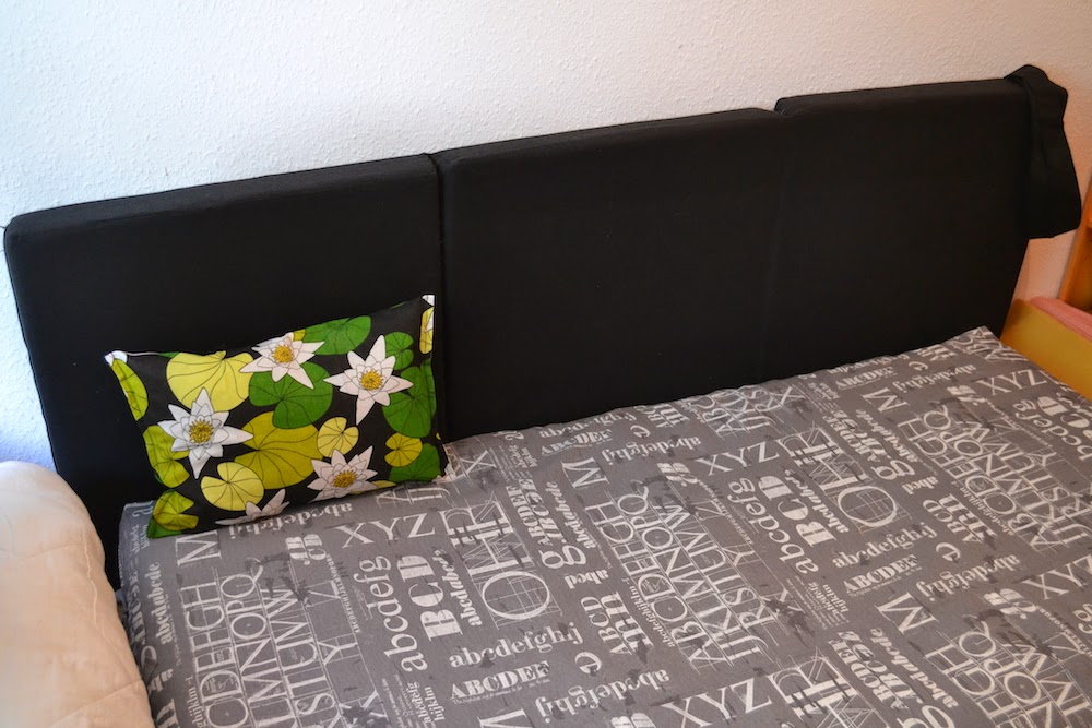 Nach dem ersten neu genähten Kissen für das Gästebett ging es in die zweite Runde. Diese Ansammlung an Mobilar aus dem Studentenzimmer meines Sohnes als ein solches zu bezeichnen ist gut gemeint. Momentan besteht das Gästebett aus den zwei aufeinander gestapelten Tatamis und dem darüber liegendem Futon. Dahinter klemmt die aufgeklappte Gästematratze an der Wand und alles wird von einem Berg an Bettzeug gekrönt, für das mir einfach der Stauraum fehlt.