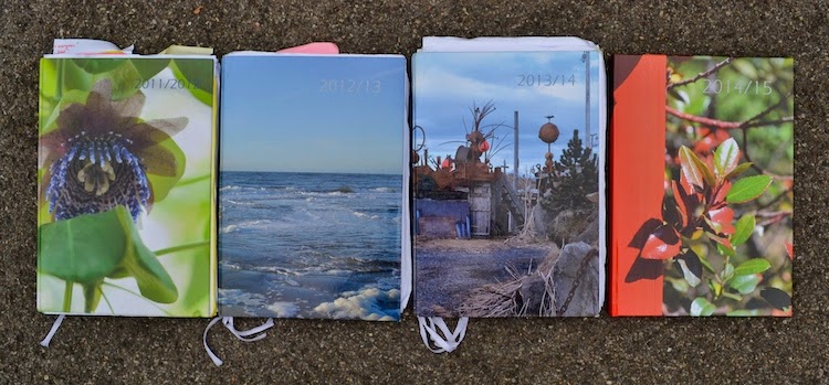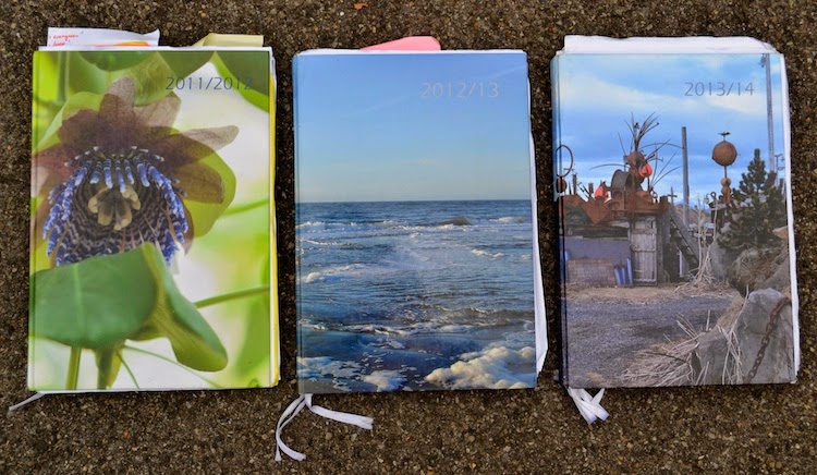 Drei Kalender-Notizbücher haben mich inzwischen drei Schuljahre begleitet und mich mit dem Umschlagfoto an schöne Momente erinnert: