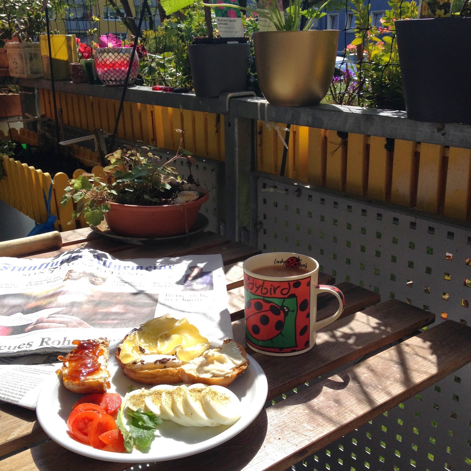 Herrlich, so ein Sonntag! Entspannend, ohne Pflicht-ruft-Wecker aufzuwachen und die Augen nach der inneren Uhr aufklappen lassen zu dürfen! Sie Sonne scheint! Endlich wieder, draußen (in meinem frisch bepflanzten und inzwischen um-, wie aufgeräumten Balkonien!!) zu frühstücken! Seele baumeln lassen. Die Augen schweifen zwischen Frühstücksbrötchen, Zeitung und dem frischen Grün der Bäume umher. Körper und Geist genießt die Ruhe, bis die Überlegung nach Frühstücksende und der von Zeitungslektüre kommt: „Was machst du heute mit dem Rest des Tages?“.