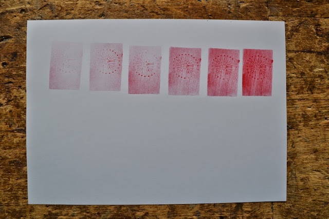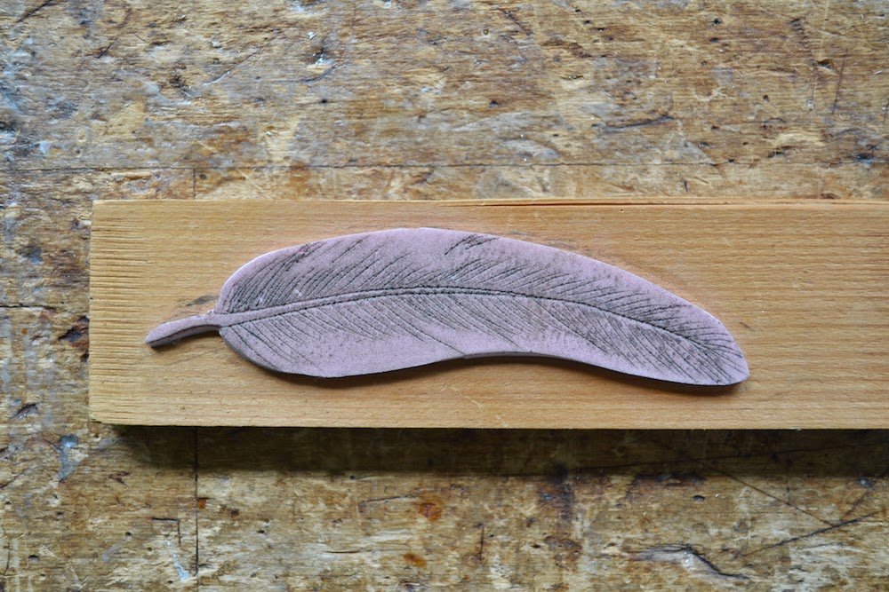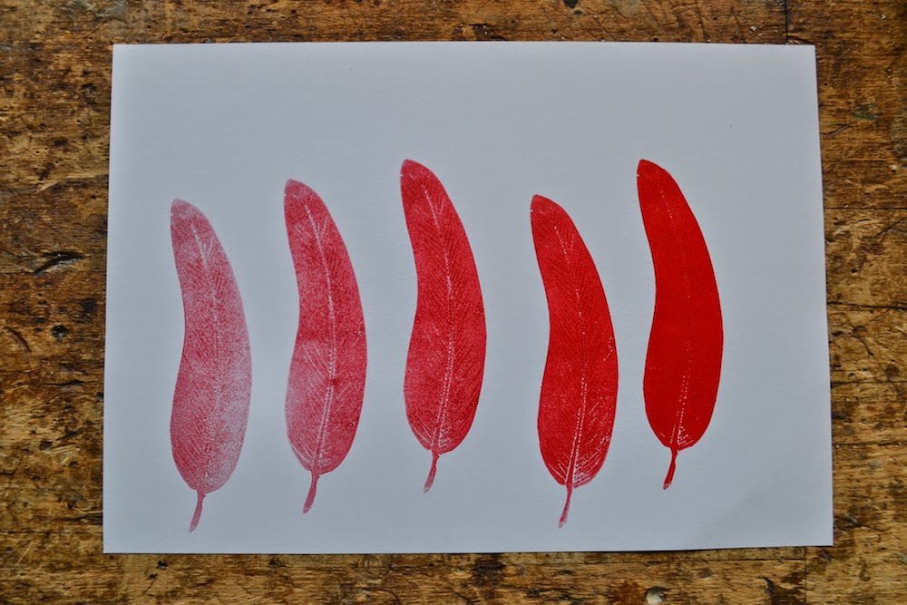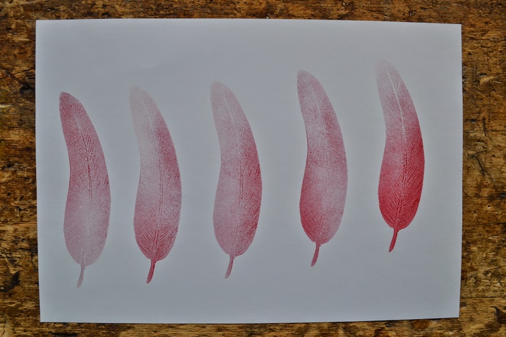 Eine andere Schülergruppe probierte meinen alten Stempel mit einem Federmotiv aus.