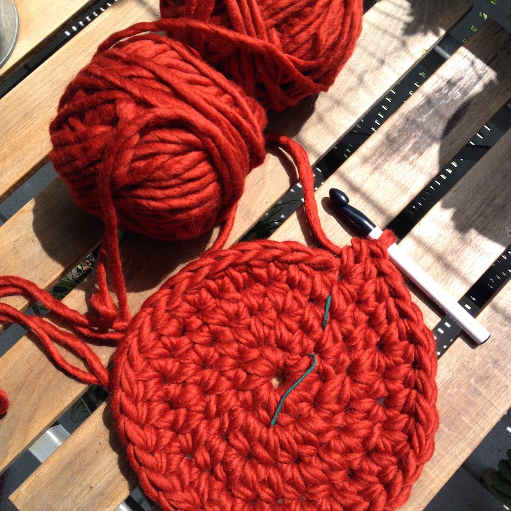 1. Runde Platte häkeln (wie bei den Häkelkissen)