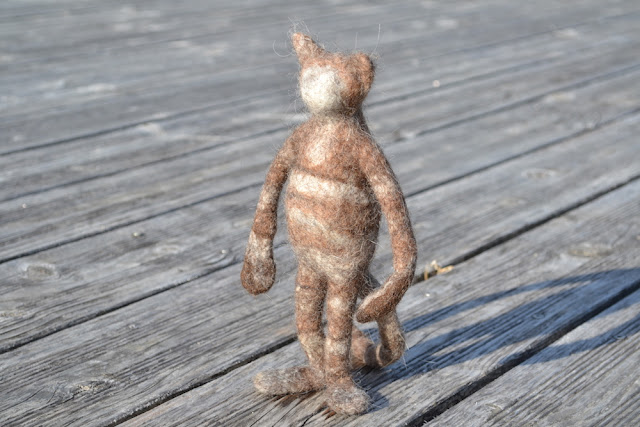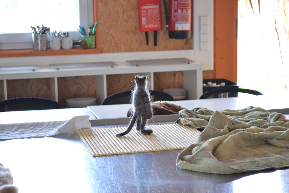 Auf die Idee selbst ein Tier, oder besser eine Katze, zu filzen kam ich Mitte 2013, als ich auf Gabis Blog ihren Beitrag zu „Ostfriesenmiezen“ fand. Bis zu meinem ersten „Schwabenkater“ brauchte es seine Zeit und ich übte so vor mich hin, bis Monate später die „Heidekätzchen“ entstehen konnten.