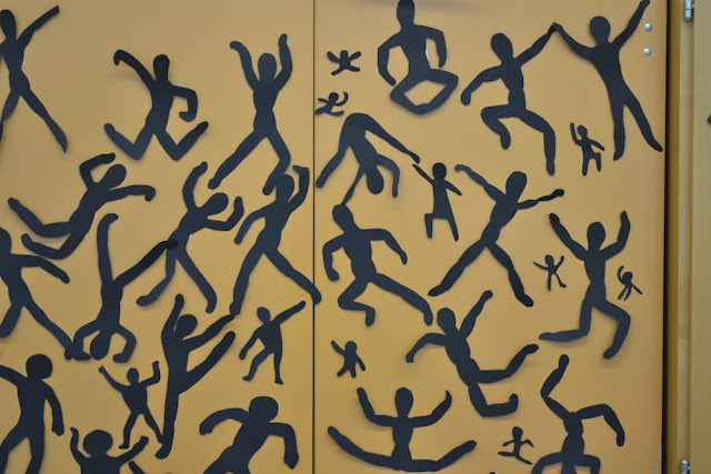 Diese Hampelmann-Glieder-Figuren sollten sich jetzt vor Freude auf schwarzem Papier „bewegen“ um dann im Umriss nachgezeichnet zu werden.