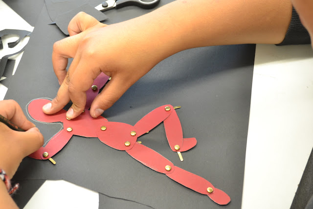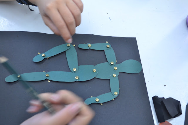 Zuerst entstanden Gliederfiguren aus Karton und Musterbeutelklammern, so wie früher auch Hampelmänner gestaltet wurden.
