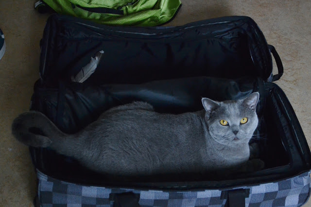 Der Kater blockiert in der Zwischenzeit den leeren Koffer, damit auch ja nichts wieder dort hinein gepackt wird! Drei Wochen Sonderprogramm ohne mich muss er erst noch verzeihen.
