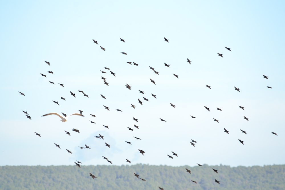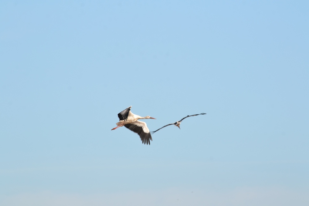 Interessant war, dass sich fast alles Federvieh nach rechts orientierte, egal ob Stare, Möwen, Reiher oder Störche.