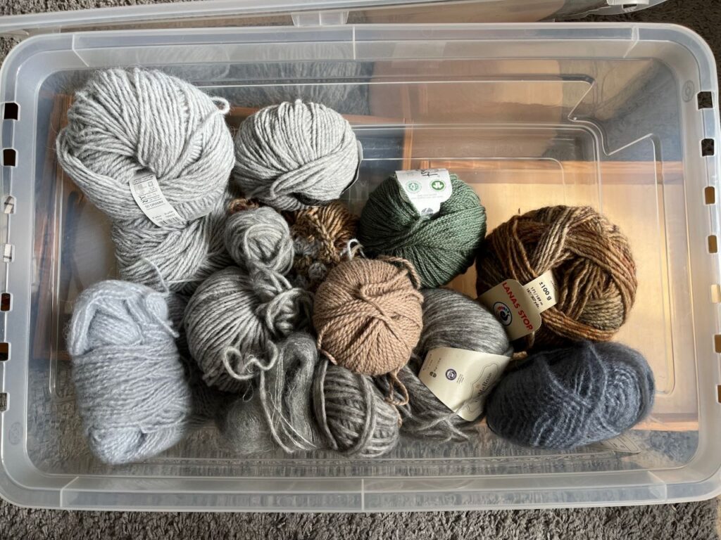 - meine Wollvorräte (Garne, nicht die Rohwolle) sind gesichtet und endlich an EINEM Ort untergebracht. Von etlichen Resten trennte ich mich, andere fanden sich, nach Materialstärke sortiert, zusammen.