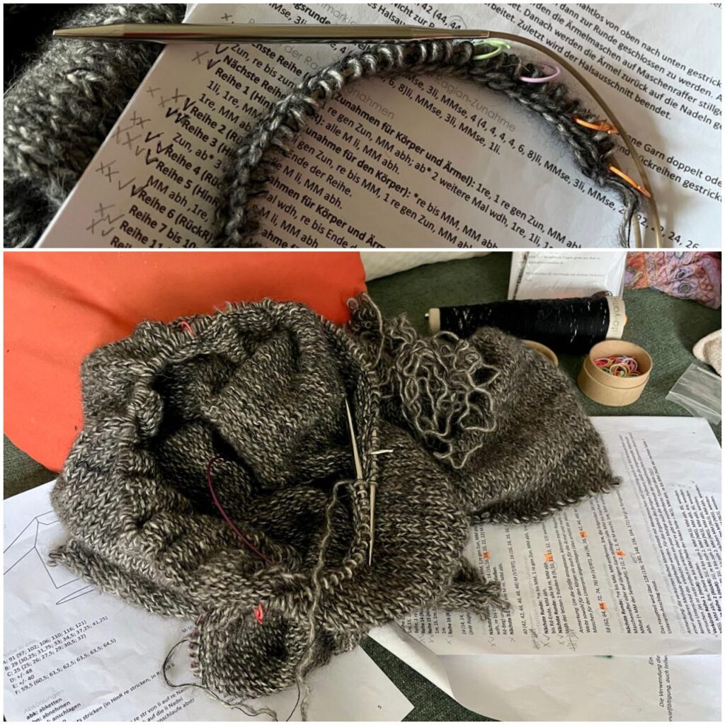 - das Strickwerk … grummel … läuft nicht. Ich stricke wieder rückwärts – stricke neu und ribbel gleichzeitig auf. Wenn das wieder nichts wird bringe ich die restlichen Knäuel zurück und der Rest kommt in die Tonne.