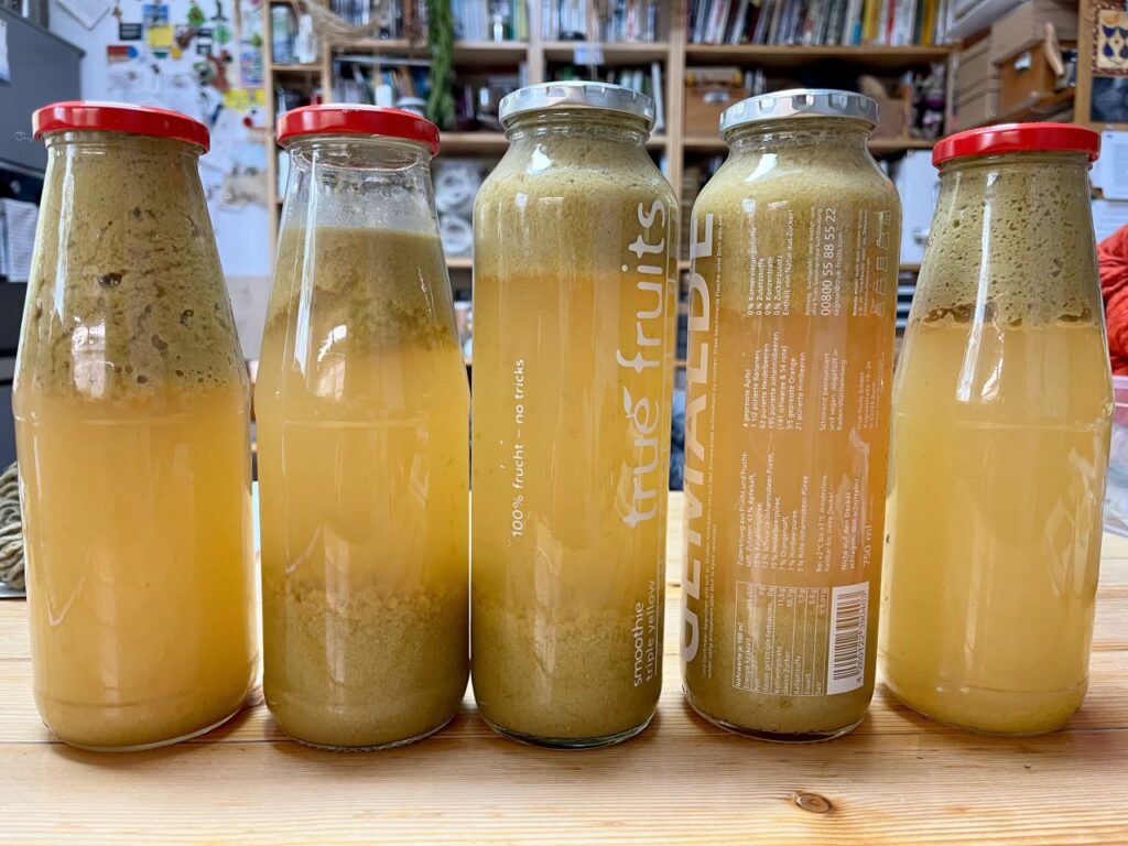Zuhause standen immer noch die Flaschen mit dem Traubensaft, der mich in seinem Herstellungszustand nicht glücklich machte. Für einen Teil hatte ich eine Abnehmerin gefunden, aber den Rest wollte ich so nicht in den Keller stellen.