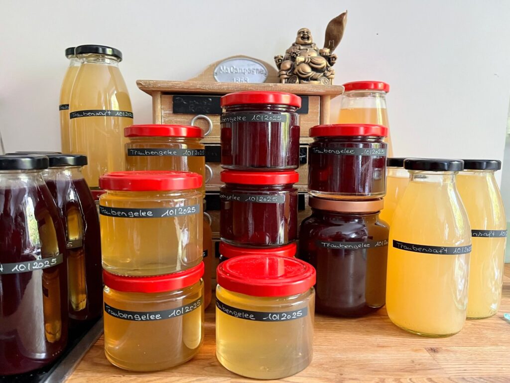 Ab jetzt machte es wieder Spaß Flaschen und Gläser mit Vorräten zu füllen. Das helle Traubengelee ist ein Träumchen!