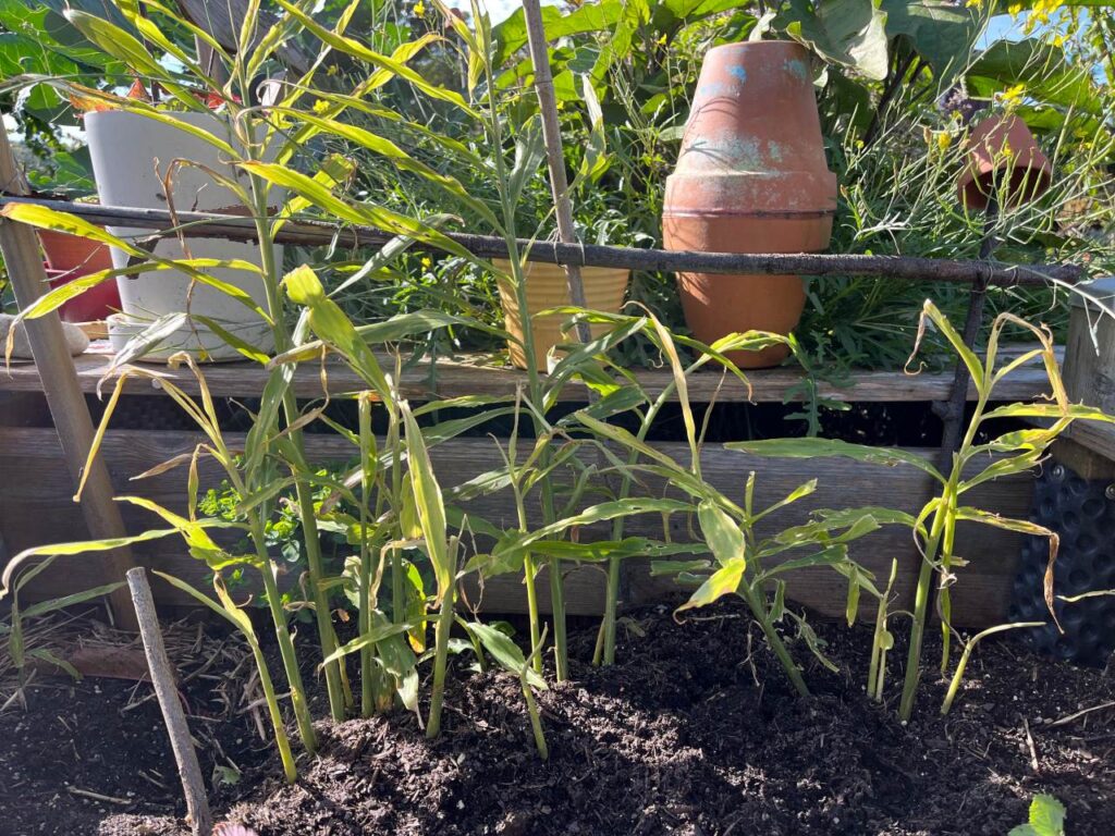 Im Hochbeet hatte sich im Sommer der Ingwer, trotz den Frostschäden im Frühjahr, recht gut entwickelt. Meine Erfahrung mit Ingwer-Anbau steckt noch in der Entwicklung, weshalb ich mir unklar über den Erntezeitpunkt war. Ich entschied mich für jetzt.