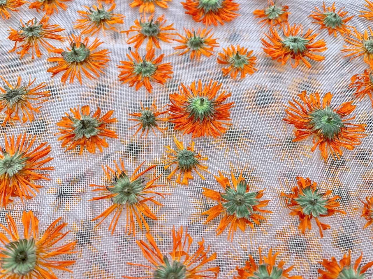 Einige Blütenköpfe kamen zusammen, von denen ich in den nächsten Tage fleißig die Körbchen wegzupfen werde. Ringelblumen sind Korbblütler. Jedes „Blütenblatt“ ist eigentlich eine Blüte, die zusammen mit anderen an einem Körbchen sitzt. Ich hoffe meine Ernte 2025 reicht für die geplanten Vorhaben.
