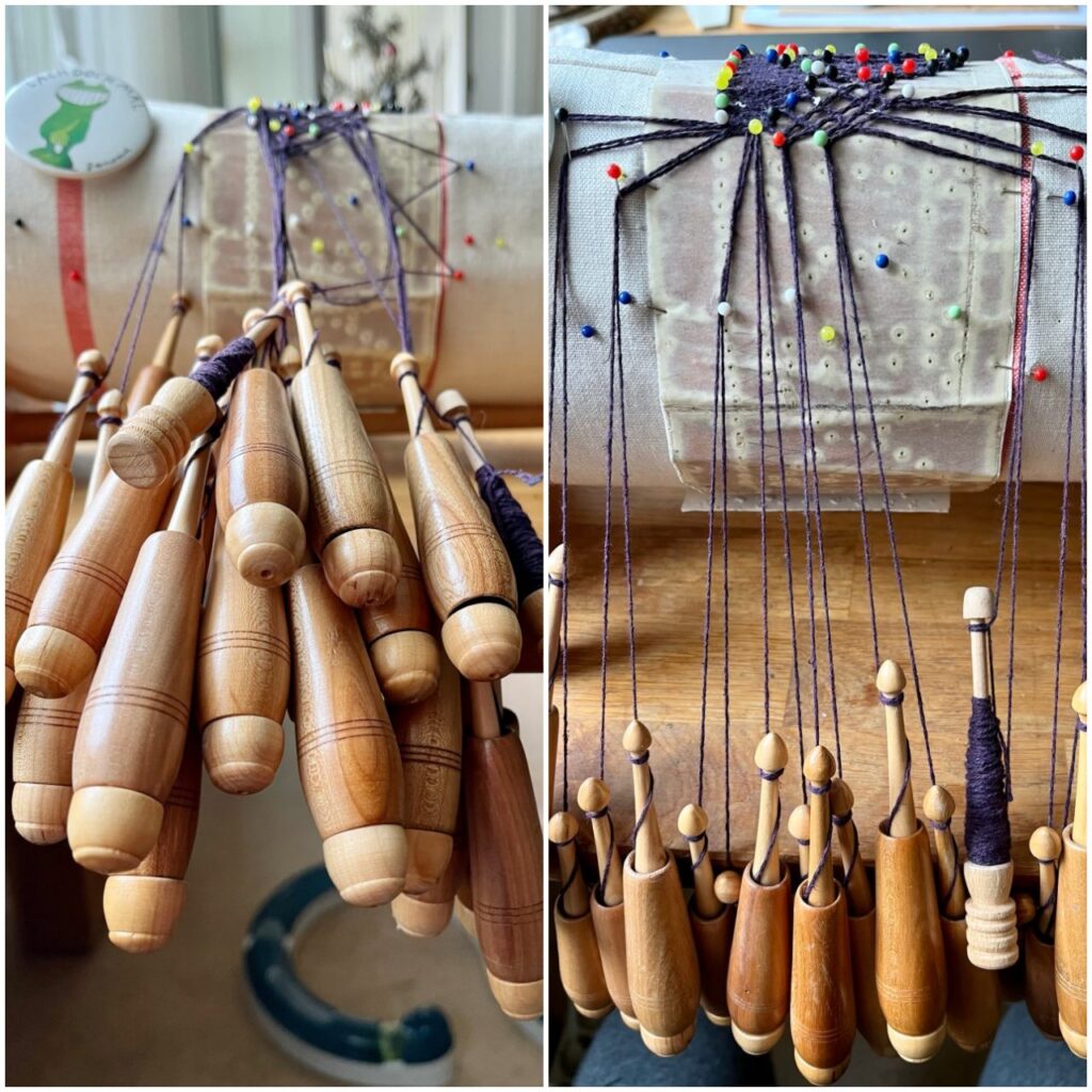 - das Klöppelkissen, von dem ich glaubte es längst aufgegeben zu haben, war aufgetaucht, mit den vom damals jungen Kater durcheinander gebrachten Klöppeln. Statt das Gebinde zu zerlegen und in Teilen zu entsorgen saß ich tatsächlich daran die Klöppel zu richten. Leider hat sich die Klöppelschrift unter der Folie irgendwie über die Jahre aufgelöst. Ein Weiterarbeiten ist so einfach nicht möglich. … Trotzdem konnte ich mich nicht trennen. Das Klöppelkissen mit der angefangenen Spitze hat vorerst einen Regalplatz gefunden. 😊