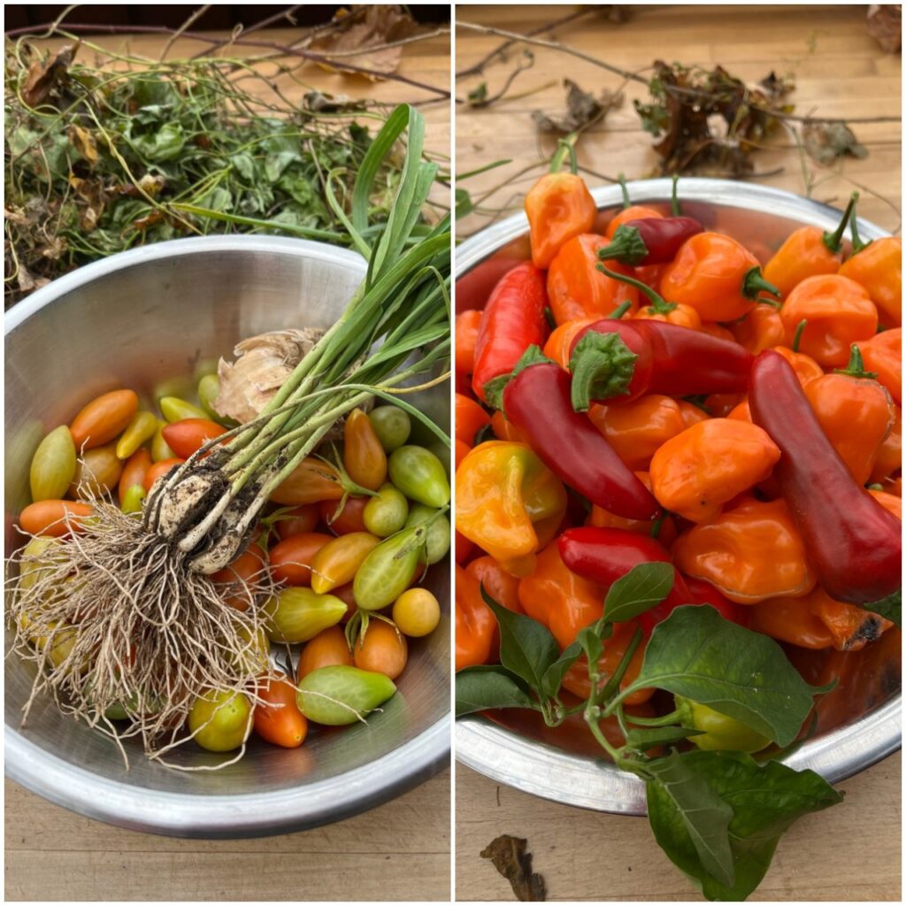 - Chilis bei Nachbars pflücken gedurft und meine gleich dazu gepackt. Inzwischen liegt die Ernte für die Frühjahrskurse geputzt im Gefrierschrank.