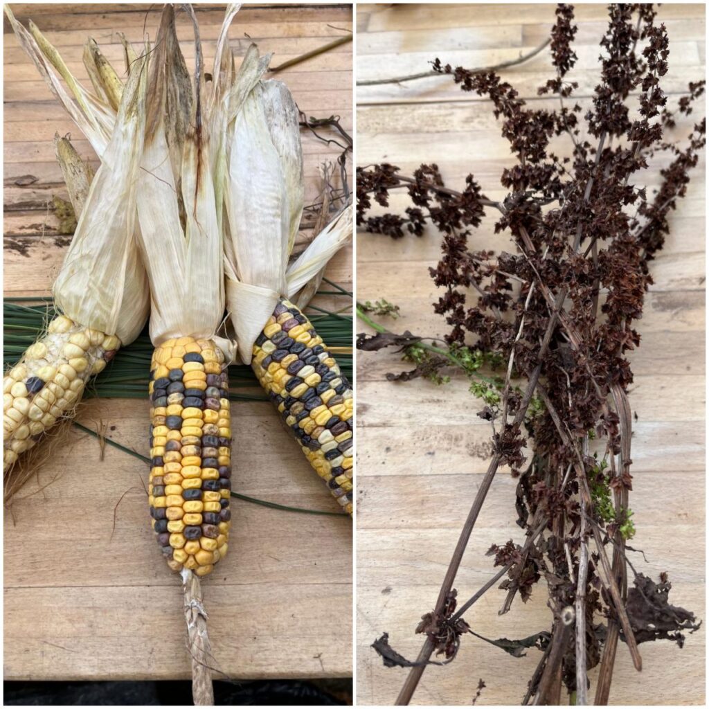 - den Mais geerntet und zum Trocknen aufgehängt