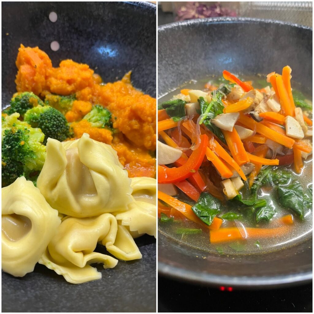 Richtig Lust zum Kochen hatte ich die vergangene Woche nicht. Im Tiefkühlschrank lagern genügend vorgekochte Portionen für die schnelle Küche. Der Inhalt der Gemüsekiste brachte mich allerdings doch in die Puschen und an den Herd.
