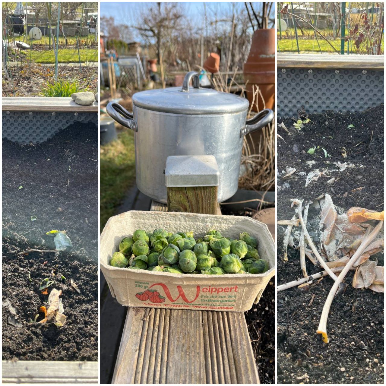 Es ernte noch Rosenkohl und Lauch im Garten und die Abfälle bleiben auch dort.