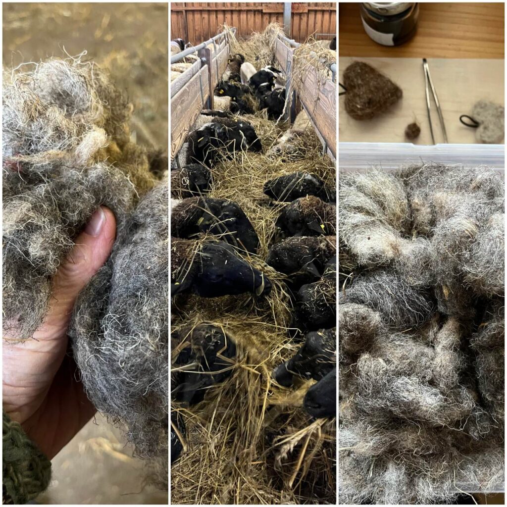 - am vergangenen Sonntag trafen sich die SchafpatInnen bei der Freundin und ihren Schafen im Stall – Link – und ich brachte mir etwas Fasermaterial von den Herdwick-Schafen mit