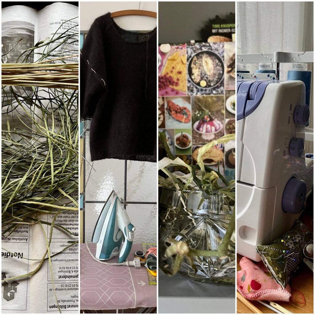 - es ist immer noch nicht fertig genäht und gestrickt, und hier und da sammeln sich Materialien zur Schnurherstellung aus Naturmaterialien