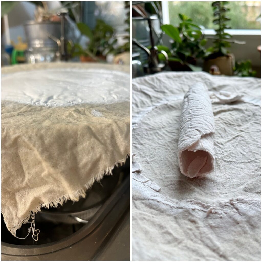 Jetzt heißt es wieder warten, bis alles durchgetrocknet ist. Die Rolle, die ich aus dem Inhalt vom letzten großen Glas geformt hatte benötigte dazu eine ganze Woche.