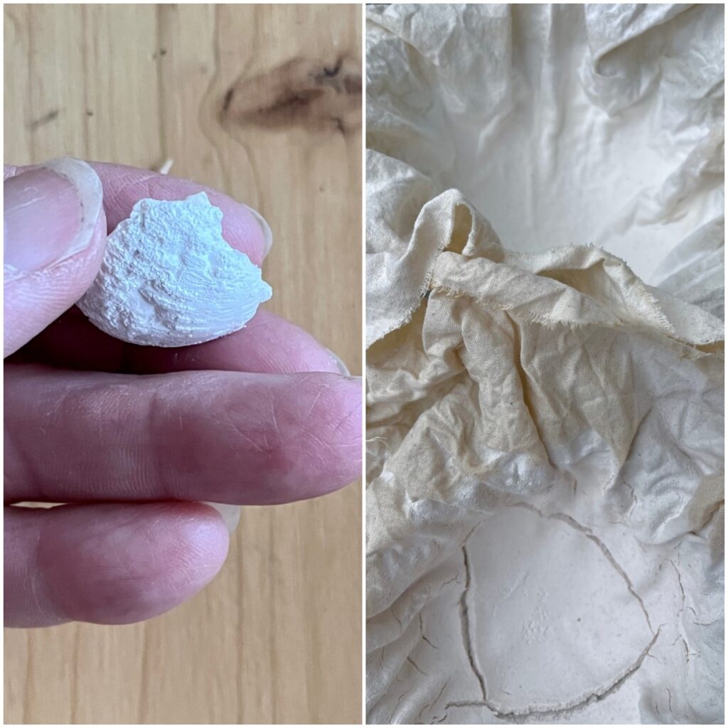 Einen Tag später ist das Wasser abgelaufen und es zeigen sich die Unterschiede. Das Weiß aus dem Muschelschalen ist klarer und wirkt feiner.