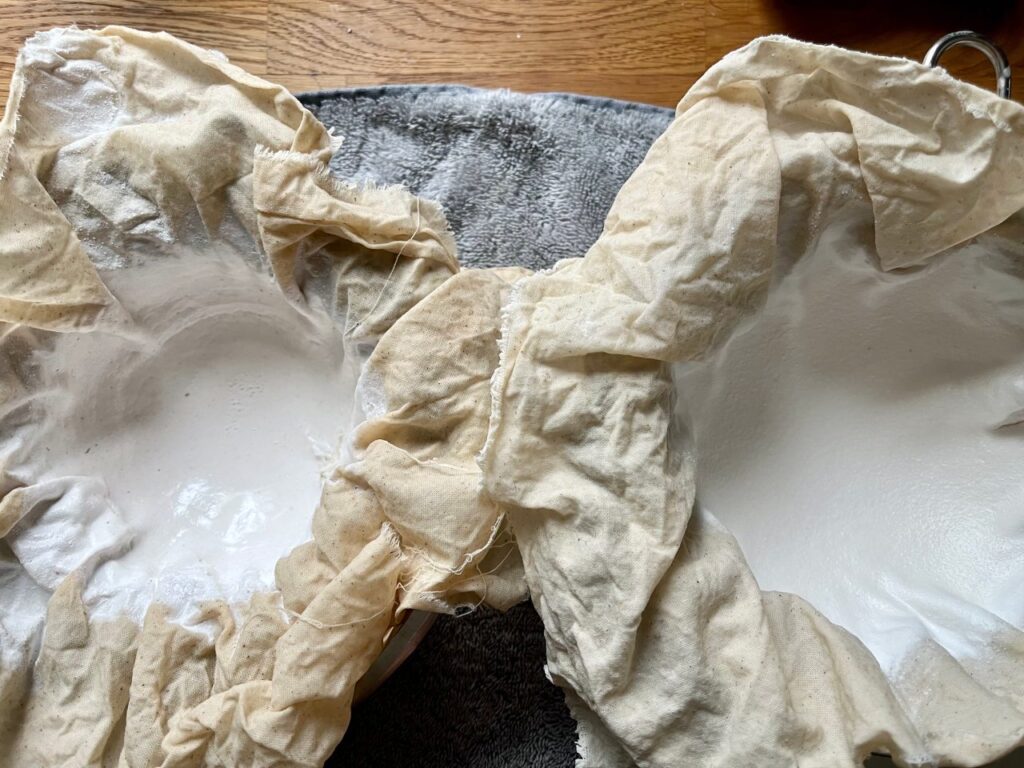Erleichterung stellte sich ein, als ich das letzte große Glas mit Eierschalenweiß abgießen konnte. Ganz offensichtlich habe ich die Schalen nicht so sauber vorbereitet, wie ich gedacht habe. Das war an den Überresten im Sieb deutlich zu erkennen. Eierschalen haben nun einmal innere Häutchen, die Schalenhäute. So gesund diese sein sollen, die müssen weg, sonst klappt es nicht mit einem feinen Pigment. Das erste Häutchen lässt sich meist einfach abpulen, aber das zweite haftet wie angeklebt an der Schale. Nun denn, die nächsten Eierschalen kommen wieder auf die Beete im Garten, mit oder ohne Häutchen.