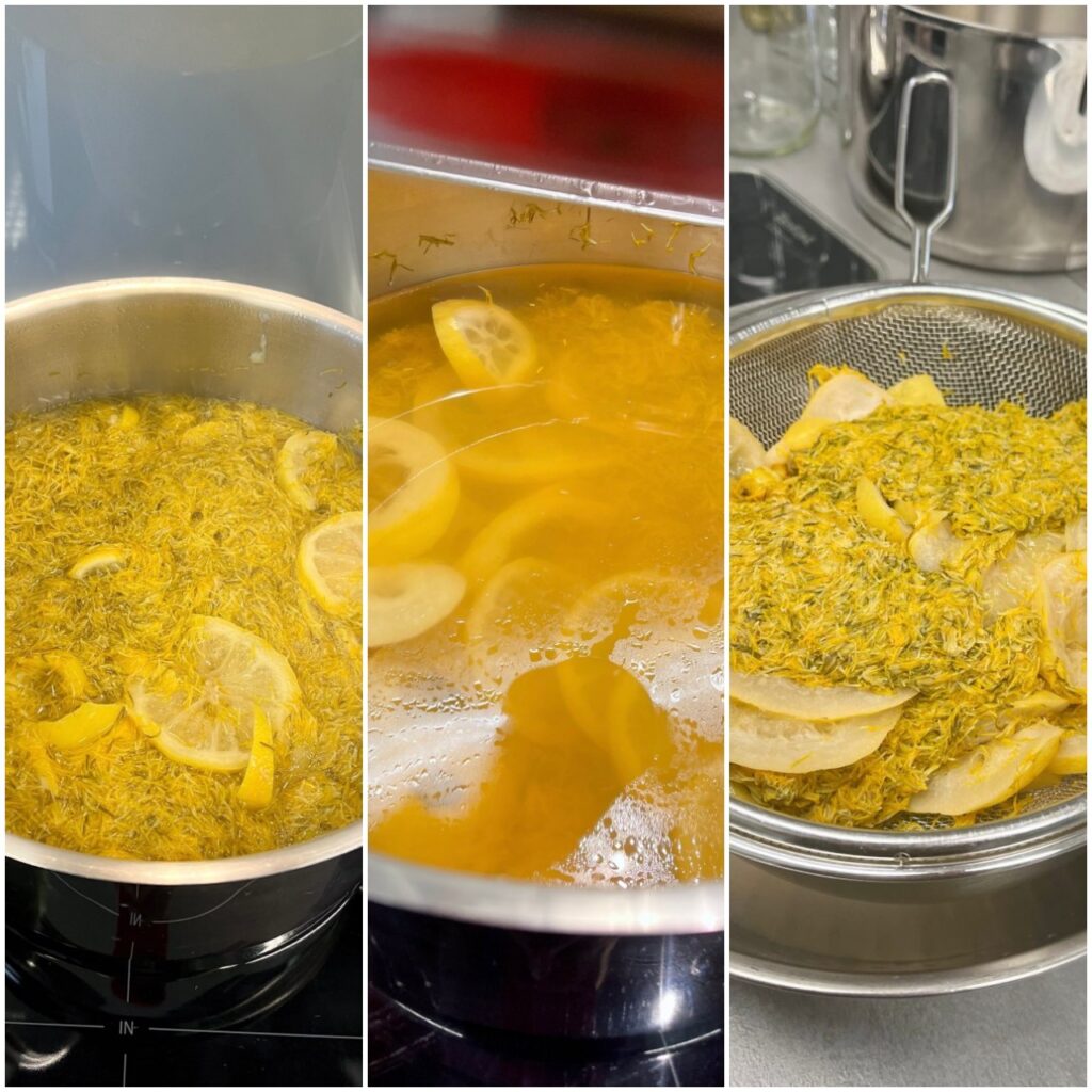 Alle Blüten kamen in die Kochtöpfe, wurden weiter verarbeitet, wie ich es hier beschrieben habe, bis daraus Sirup, Gelee, Honig und Marmelade entstanden.