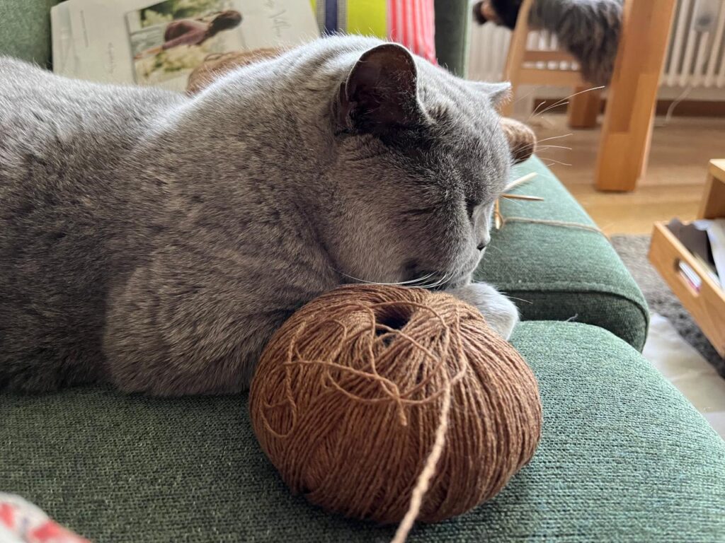 Fast fertig, das Bündchen, der erste Ärmel, um dann in der Mitte des zweiten, bei der Anprobe, zu beschließen … das wird nichts, also aufribbeln und mit einer anderen Anleitung neu anfangen.