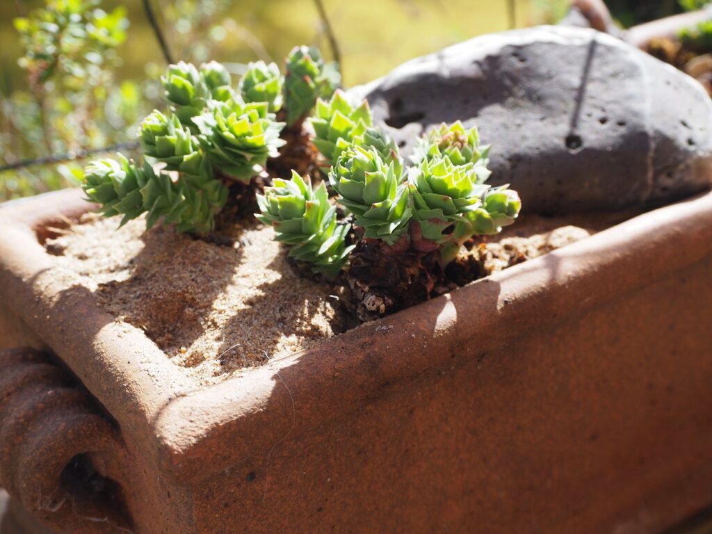 Unter Beobachtung habe ich vor allem die Entwicklung der Rosenwurz. Mein Ableger hat sich vom halb vertrockneten, winzigen Knubbel, den ich vor Jahren vom Parkplatz in Borgarfjörður, Island, aufgelesen hatte, richtig gut entwickelt. Allerdings geht er hier viel früher in Blüte, als in seiner Heimat.